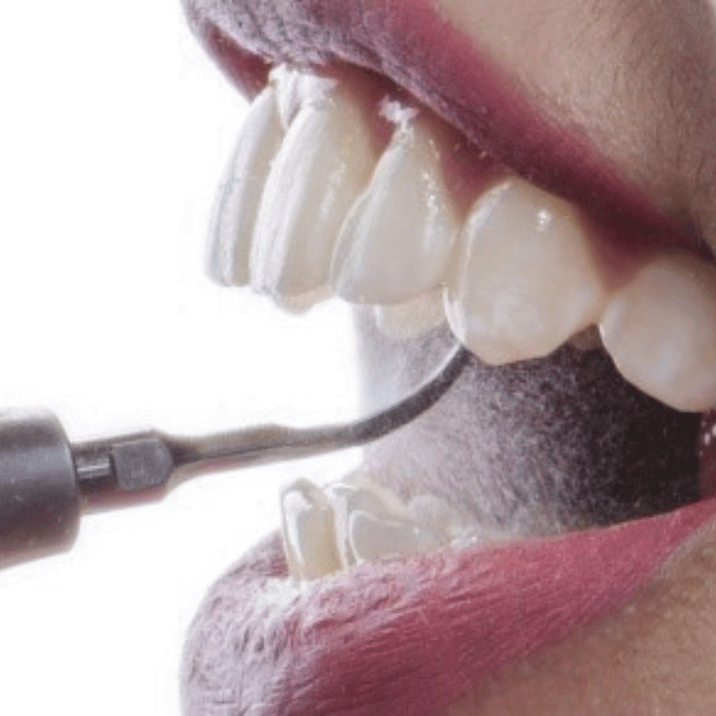 Scaling removes hardened plaque (tartar) from above and below the gum line with ultrasonic and manual instruments; polishing follows, smoothing enamel surfaces and removing surface stains using a prophy cup and abrasive paste. It Prevents gum disease and tooth decay, Freshens breath, Enhances smile appearance, Supports overall health